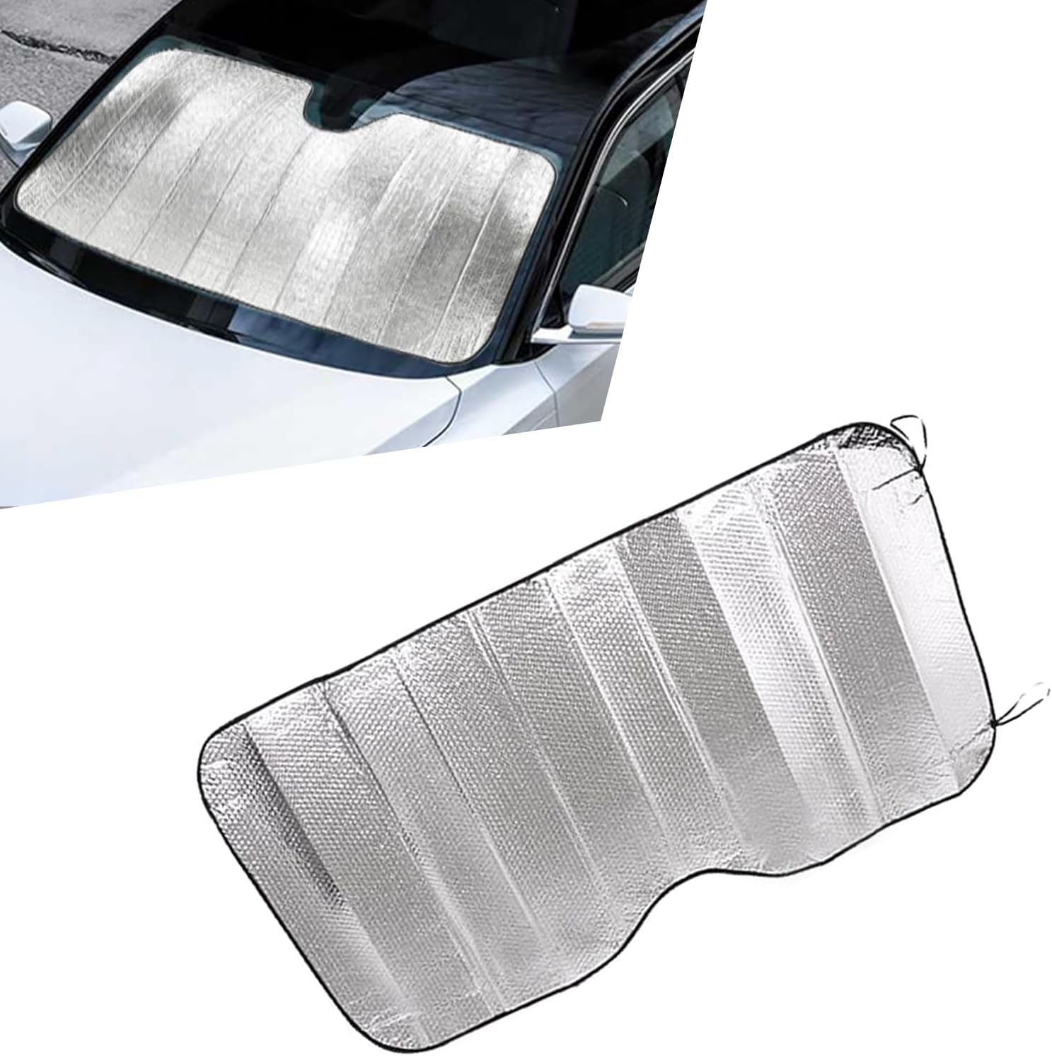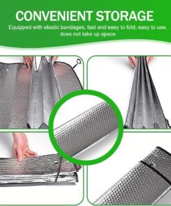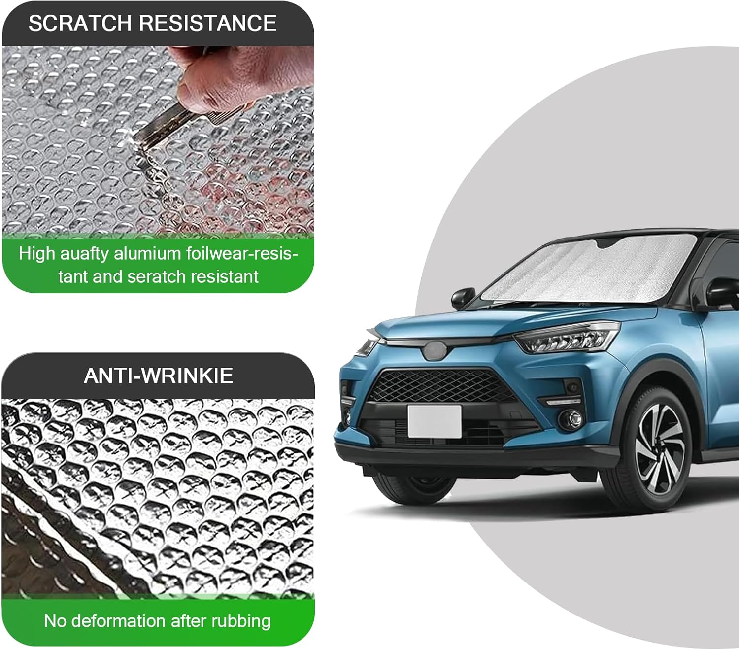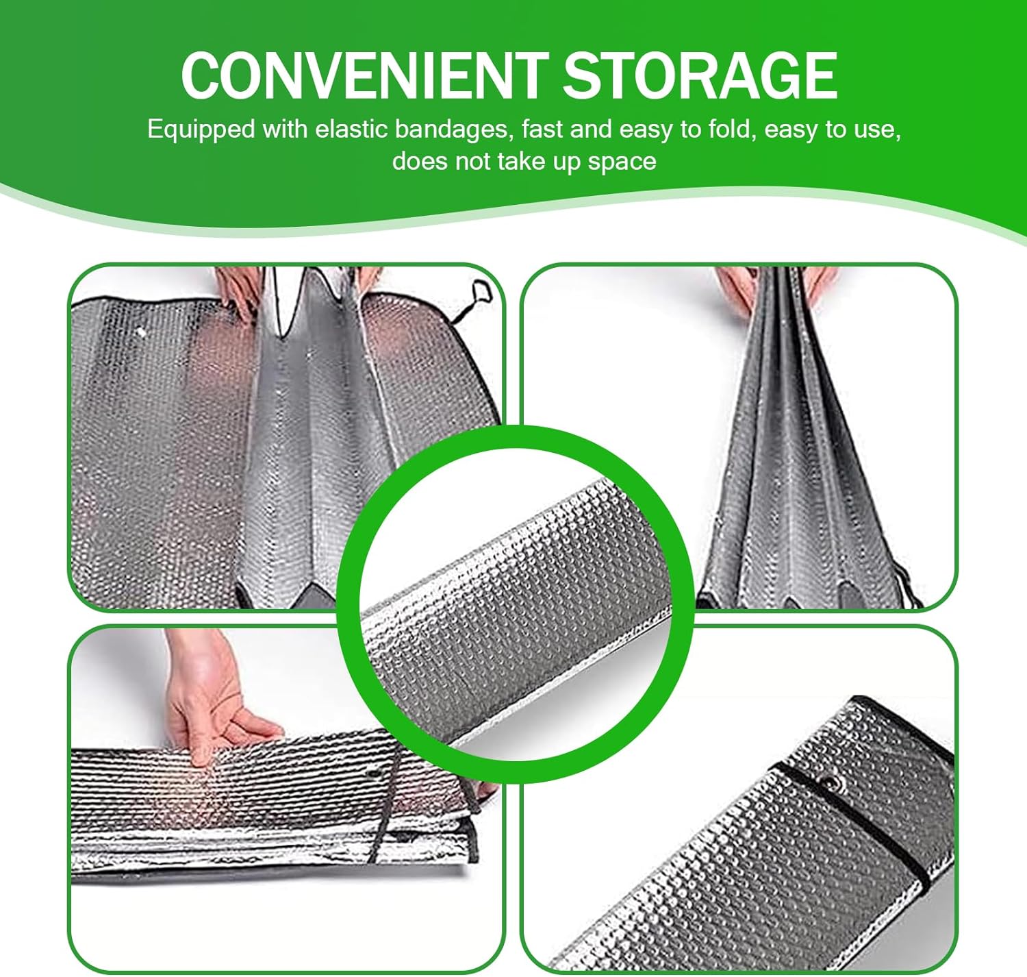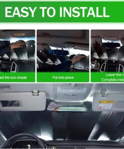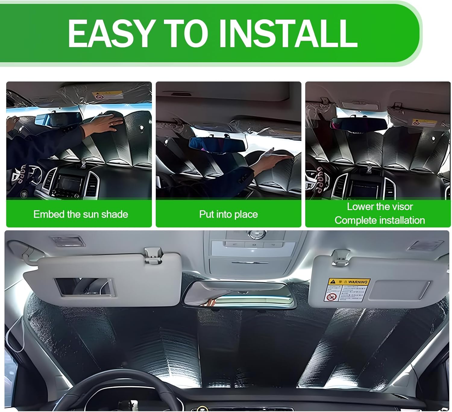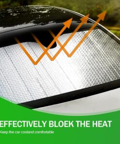 Keeps Your Vehicle Cool: This car sunshade keeps your vehicle cool. Reflective materials can effectively reduce the temperature inside the car. This windshield visor protector helps avoid extra heat and keeps the interior of your vehicle cool. Windshield covers help keep the interior of your car cool during hot and sunny weather.