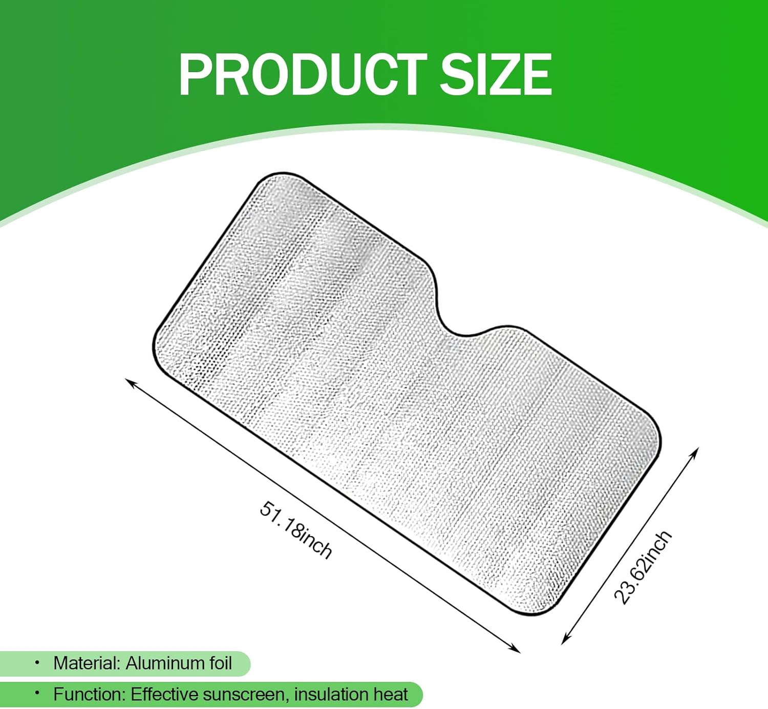 Packing List: You will receive a car front windshield sunshade. The product measures 51.18″ x 23.62″, providing perfect coverage for your front windshield. It fits most SUVs, trucks, vans and cars. This windshield cover is perfect for your cool car.