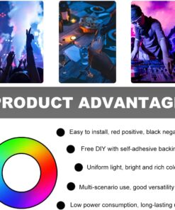 【Easy Installation】: First, peel off the backing of the strong double-sided adhesive and firmly stick the light strip in your desired location. Second, connect the red wire to the positive pole of your vehicle’s 12V power supply. Third, connect the black wire to the negative pole.