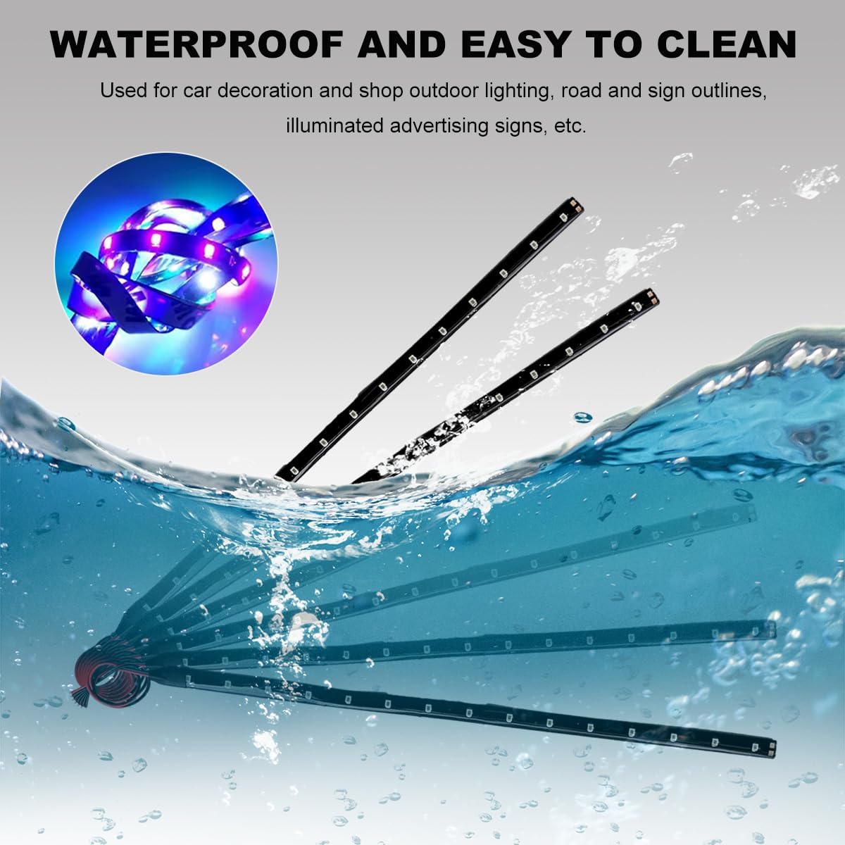 【Powerful Lighting】: Each strip is equipped with 15 LED beads that provide a bright and uniform light output, which can ensure a sleek exterior decor for your vehicle. This consistent illumination makes your vehicle highly visible, enhancing safety while adding an eye-catching decorative touch.