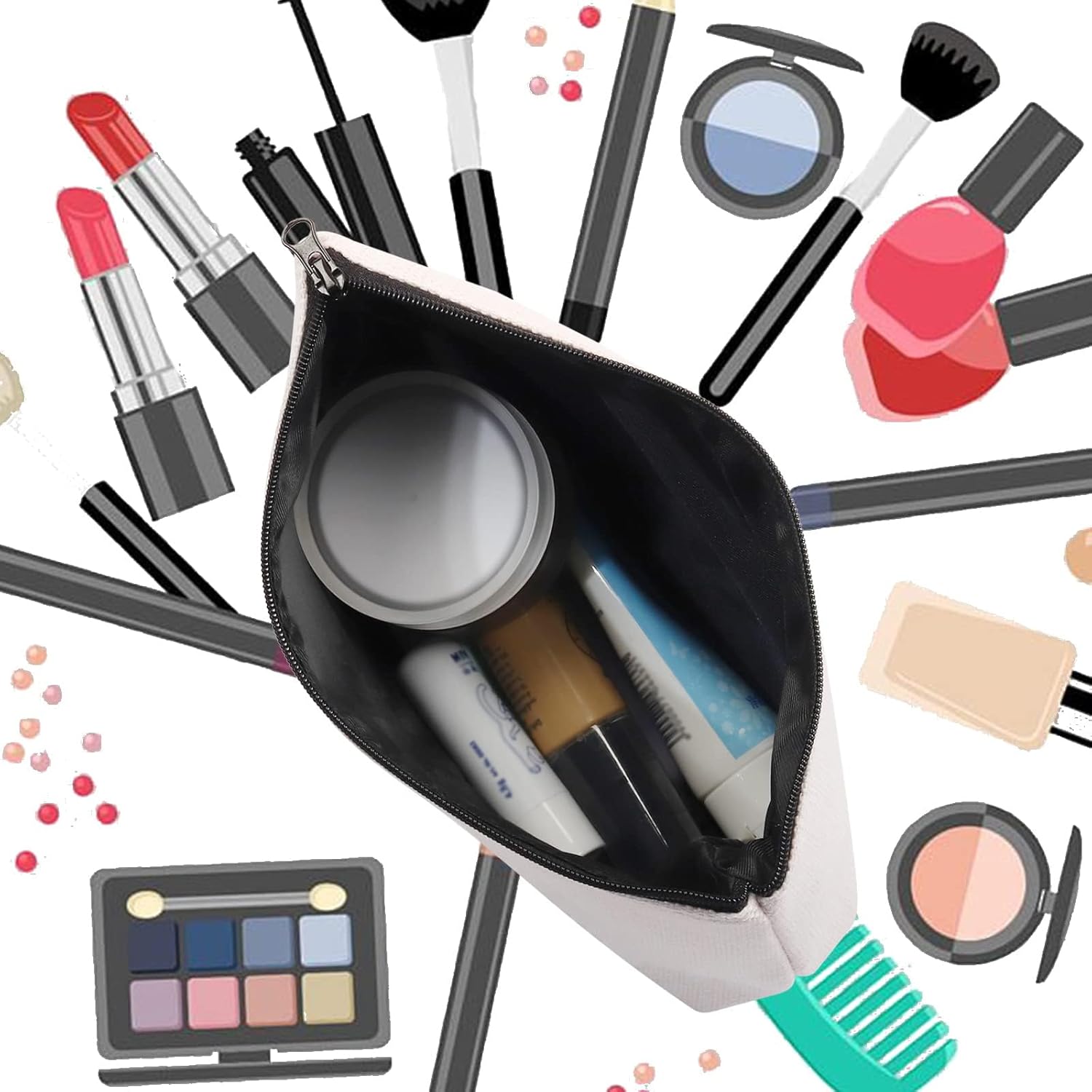 【Easy Storage】This cosmetic bag is sewn carefully and evenly, making the bag strong and durable and its sturdy zipper and large interior space, this beauty supplies storage bag can store cosmetics and other items easily.