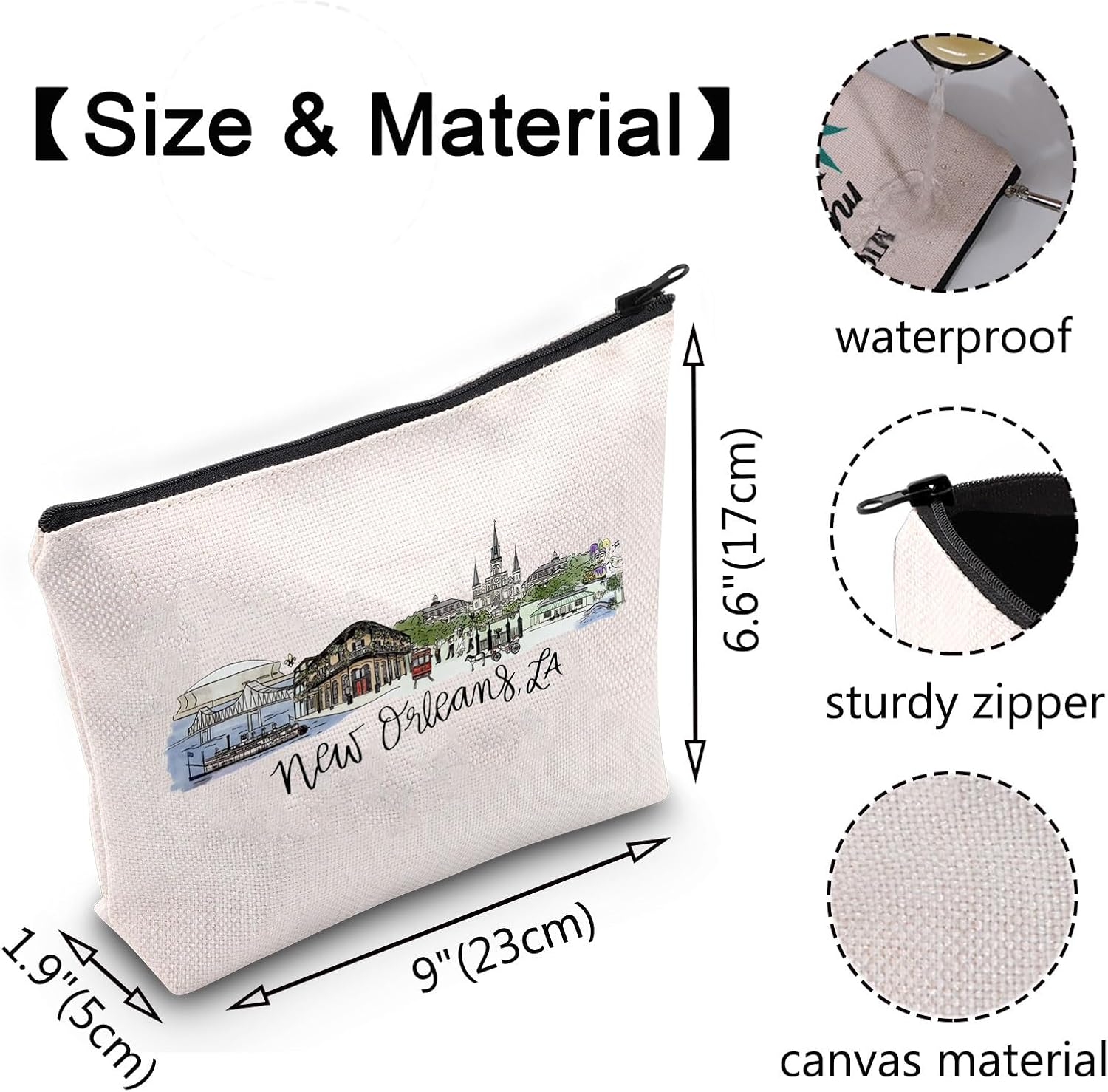 VAMSII New Orleans Trip Gift New Orleans LA Travel Cosmetic Bag New Orleans Souvenir Louisiana Vacation Gift (NewOrleansLABag)
