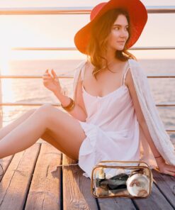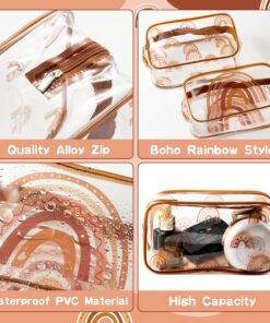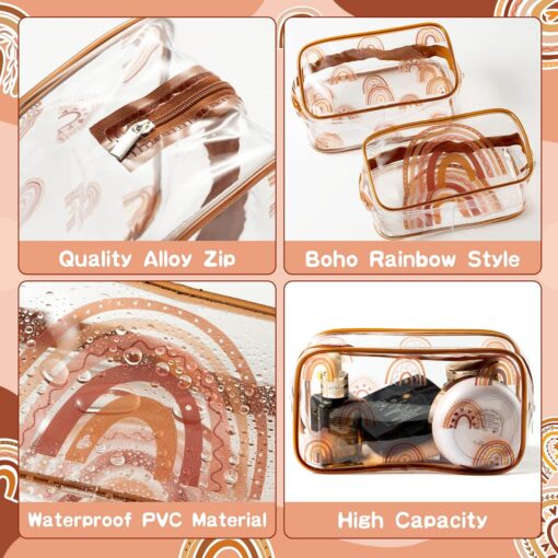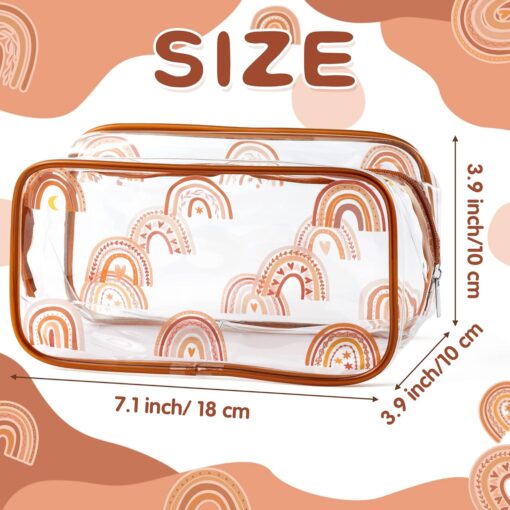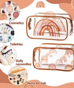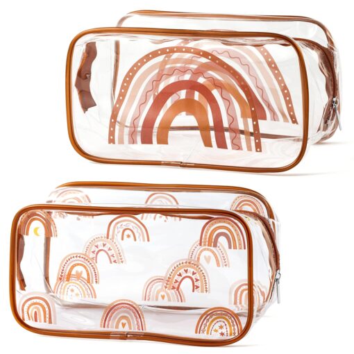 Y1tvei 2Pcs Summer Boho Rainbow Clear PVC Makeup Bag Stylish Brown Fall Theme Plastic Cosmetic Toiletry Bag with Zipper Makeup Case Portable Waterproof Clutch Purse Travel Organizer for Women Lady