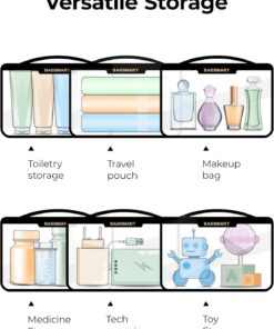 Versatile Tote: Bagsmart travel toiletry bag can be used as cosmetic bag, toiletry bag, grocery bag, toy bag, medicine bag, skincare bag, electronics bag, stationery bag, storage bag etc. Nice toiletry bag for women and men!