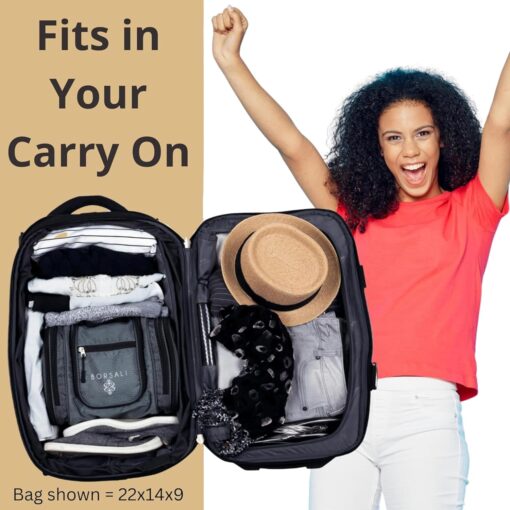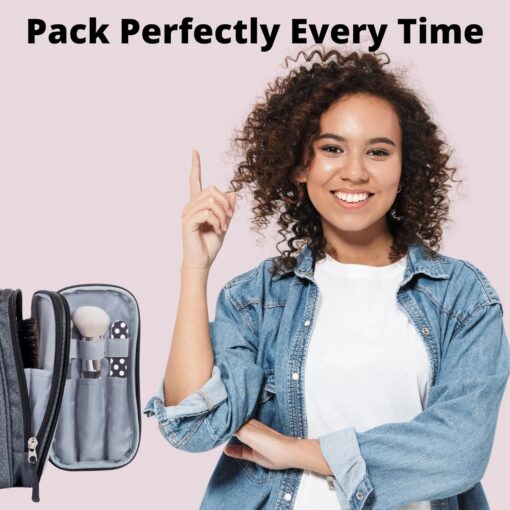 Pack Effortlessly; This hanging toiletry bag is compact and roomy; packing for any trip will become a breeze; you will find that you are carrying around less weight; at eleven inches wide x eight inches tall x four inches deep when closed it even fits inside your wheeled carry-on