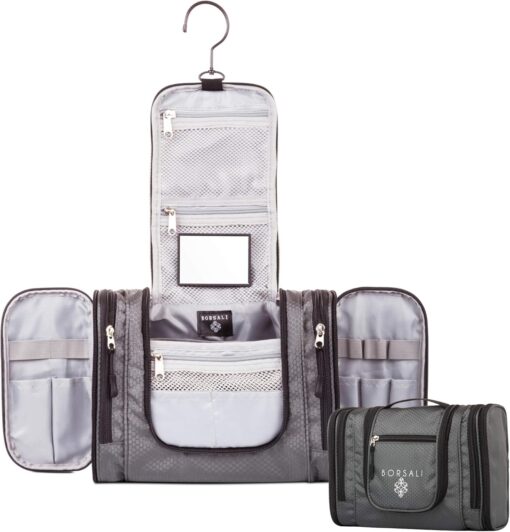 Enjoy more time doing things you love: spend less time digging in your toiletries bag; when your morning routine is upset by jet lag or a new hotel room, this super organized hanging toiletry bag will help you find your makeup fast; it also has a mirror