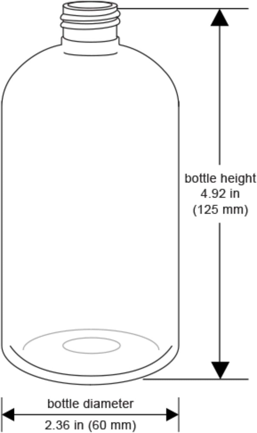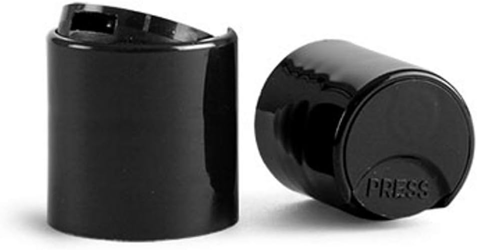 Pack of 12 empty, fillable bottles with 12 smooth black press down disc caps. Boston Round shaped bottles are made of BPA-free PET plastic. Bottles are made in USA from new material. Caps are made in the USA or are imported. Recyclable. Bottle capacity is 8 ounces. Bottle height: 4.92″ (125 mm). Bottle diameter: 2.36″ (60 mm). Cap size is 24/410 and is made of BPA-free material. Dispensing disc caps open by pushing down on one side and close by pushing down on the other side. Lightweight and high quality packaging. Use to easily store and secure travel and homemade products, shampoo, conditioner, hair color, gel, body soaps, paints, ink, art supplies, cleaning supplies, diluted essential oils, dish soap, hair treatments, and other liquids.