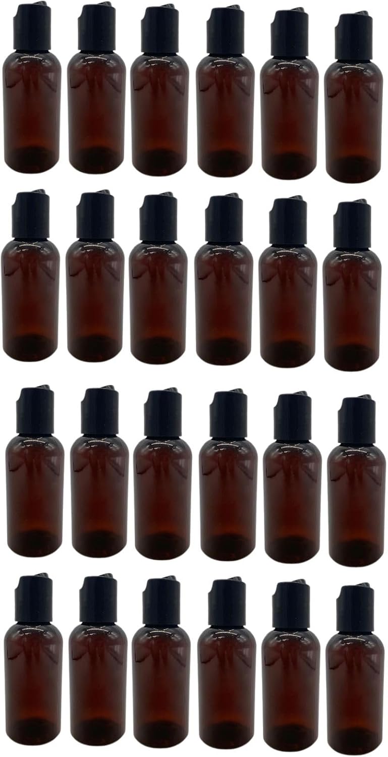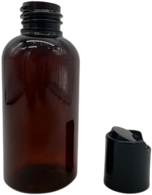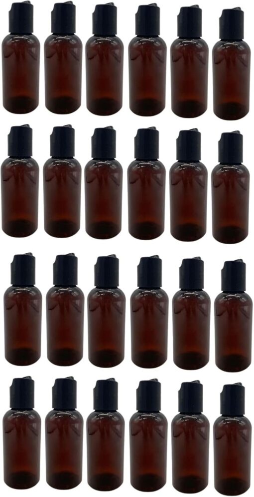 Natural Farms Empty Travel Shampoo Bottles – 2 oz – 24 Pack – Amber Boston Plastic Bottles – Black Flip Top – for Essential Oils- Perfumes- Soap – Creams – Lotions – Gels