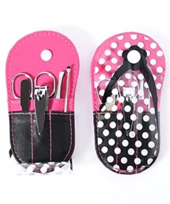 Cute polka dot flip flop design, manicure sets for women that are made of carbon steel, which ensures long lasting durability.