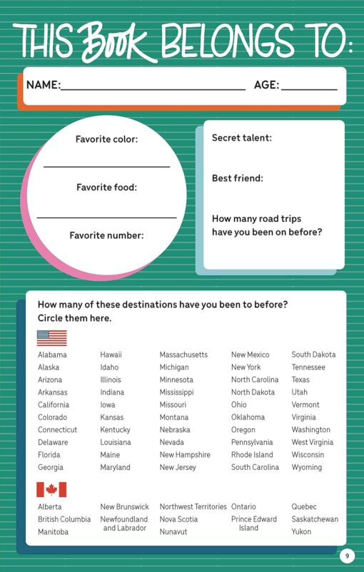 The ultimate vacation buddy, Road Trip Activities and Travel Journal for Kids is a must-have activity book for kids to enjoy as you reach your destination, making your long car ride much more enjoyable! Including car games, mad libs, puzzles, writing prompts, questionnaires, coloring pages, interview ideas, scavenger hunts, brain-teasers, and more, this road trip book is filled with more than 100 entertaining activities, inventive ideas, and endless fun.