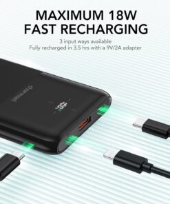 Capacity 10000mAh Dimensions 100.2 * 67 * 17.2mm / 3.95″ * 2.63″ * 0.68″ Weight 166g / 5.85oz Micro USB Input 5V-2A / 9V-2A USB Input(for iPhone) 5V-2A USB C Input 5V-3A / 9V-2A USB C Output 5V-3A / 9V-2.22A / 12V-1.67A USB A Output 5V-3A / 9V-2A / 12V-1.5A Charging Time 3.5 hours (by 9V-2A Power adapter) / 6 hours (by 5V-2A Power adapter)