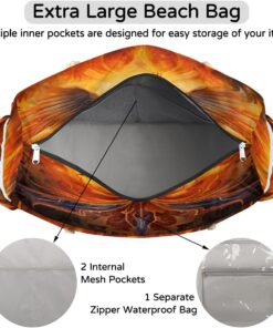 The convenient zipper closure ensures easy access to your items, while the sturdy rope handles offer a comfortable grip for effortless transportation. Whether you’re heading to the beach, pool, or park, this bag is your go-to companion.