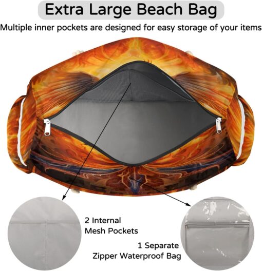 Stay organized with the multiple pockets that our Beach Tote Bag offers. The side pockets are perfect for storing water bottles, flip-flops, sunglasses, and other small essentials. Additionally, the main compartment features a transparent PVC zipper pocket, providing a secure and dry space for your valuables such as smartphones, tablets, credit cards, cash, and jewelry. No more rummaging through your bag to find what you need – everything has its designated place.