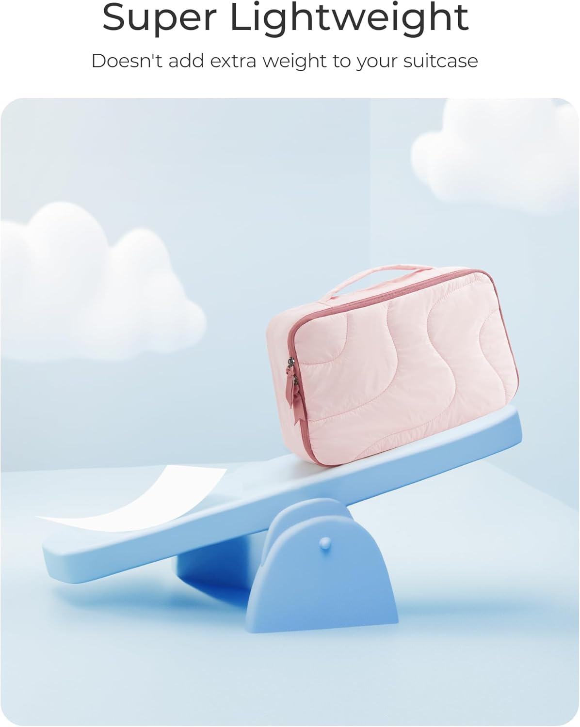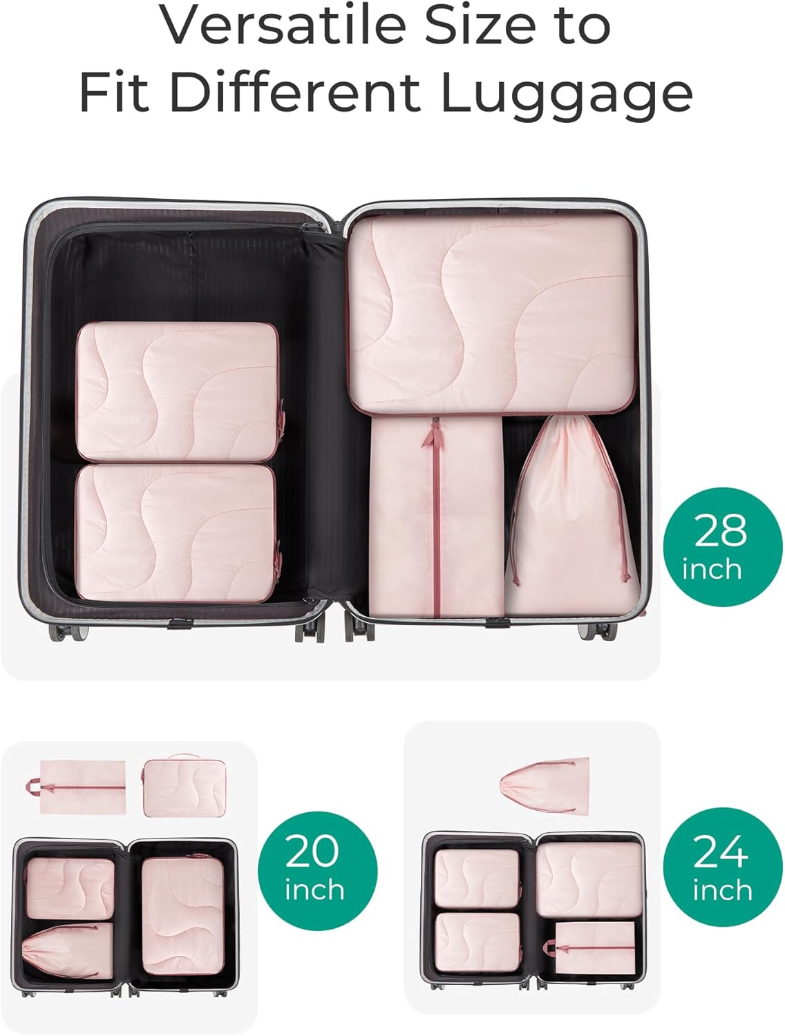Puffy & Lightweight: The manufacturing materials of the packing cubes are soft, fluffy, with a smooth fabric that provides an incredibly pleasant touch. The travel organizers seem fluffy, but they’re actually super lightweight, so they won’t weigh down your suitcase at all
