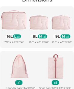 35L Large Capacity: This 5-piece packing bag set includes 1 large bag, 2 medium bags, 1 shoe bag, and 1 laundry bag. With a generous capacity of 35 liters, it allows for better organization and classification when packing for travel. Perfect for keeping your belongings neat and easily accessible