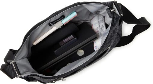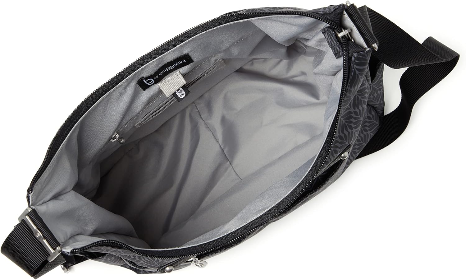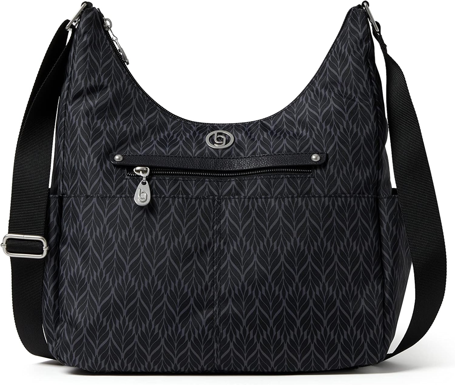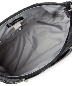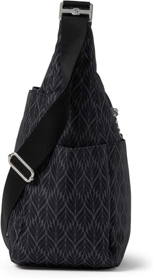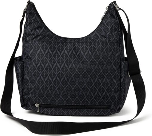This crossbody hobo bag is a classic everyday style that features RFID-protected credit card slots, lightweight fabric, and an adjustable strap. The Phoenix hobo has refined design details that work from day to night, and also includes a quick access cell phone pocket.