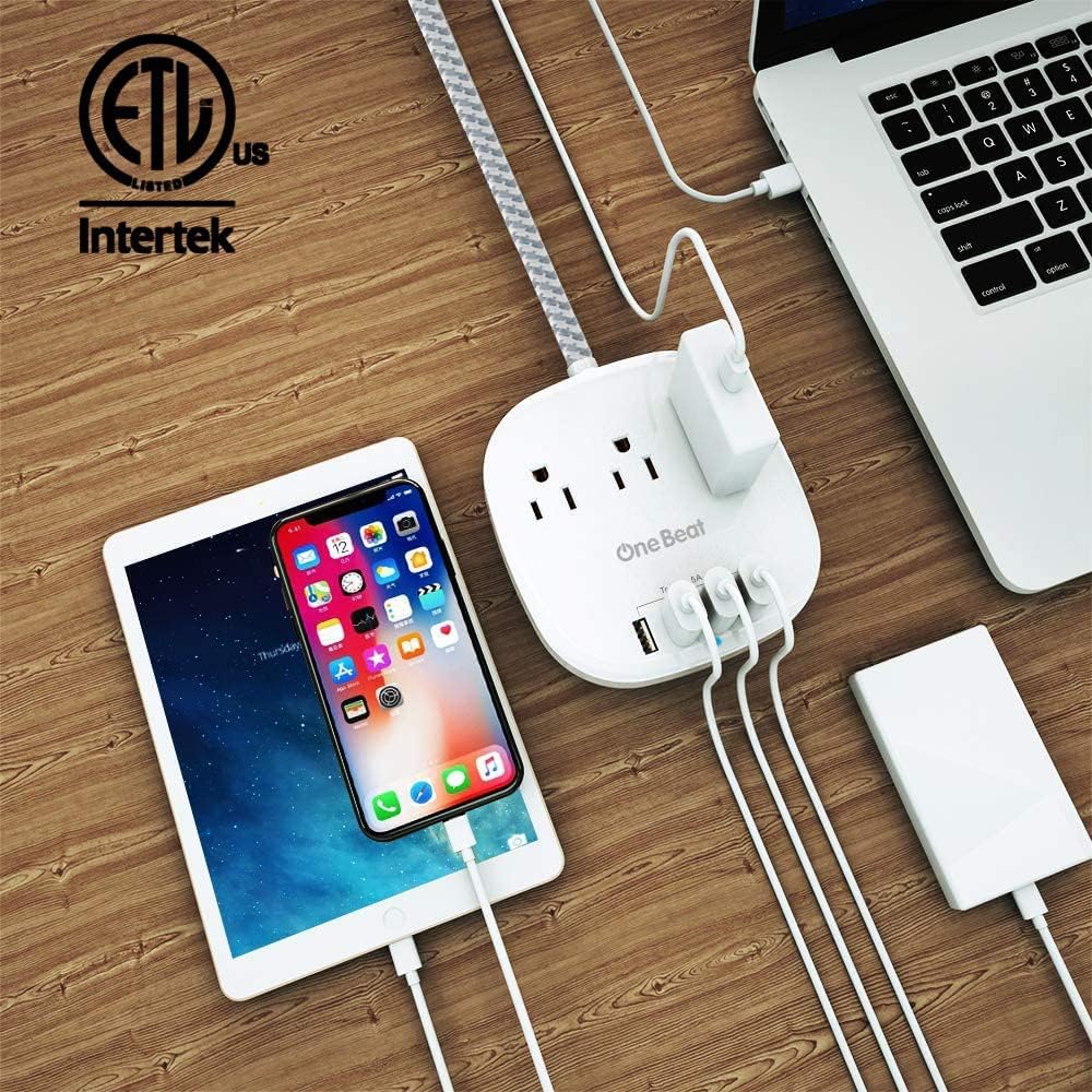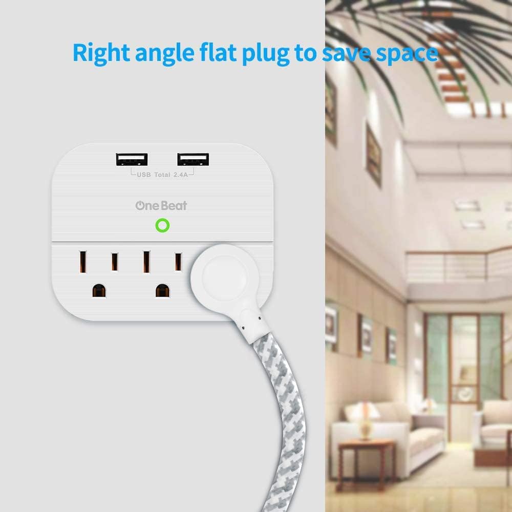 【Convenient & Portable】- 5 Ft upgraded flat braided extension cord makes it more flexible, get easy access to place that’s hard to reach, extend the portable power strip to table or other place easily where need power outlets or usb charging ports simultaneously , you still can play your iPad or video game when charging.