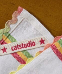 COTTON DISH TOWELS are completely handmade and are highly absorbent and durable, perfect for everyday use in the kitchen or as bathroom towels. Each towel measures a generous 20 x 29 inches and features a hand-embroidered border and colorful stripes. The design is printed using a labor-intensive hand-swipe silk-screen process with 12 colors.
