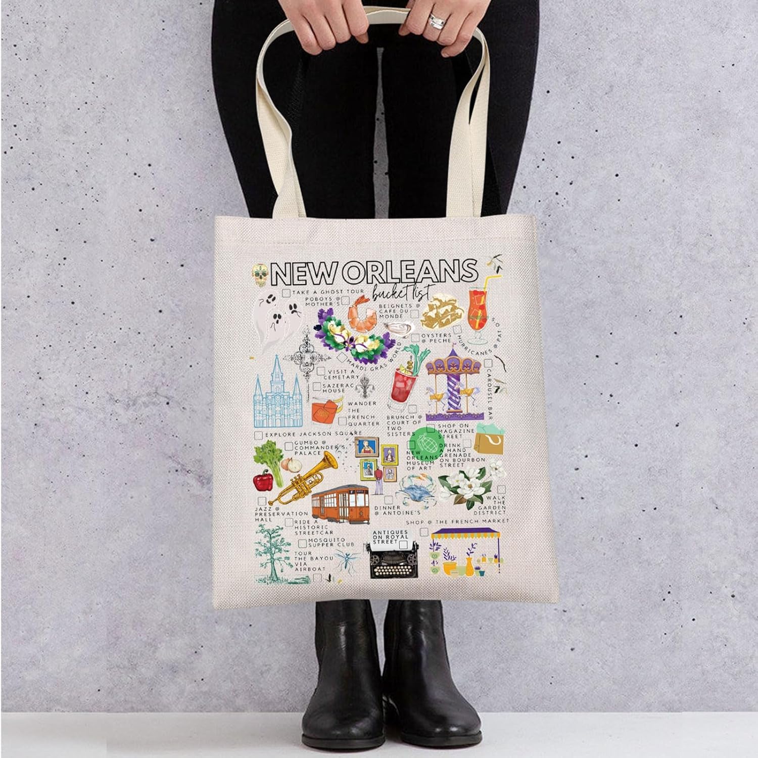 WZMPA New Orleans Travel Tote Bag New Orleans Souvenir Gift New Orleans Reusable Grocery Bag New Orleans Merch