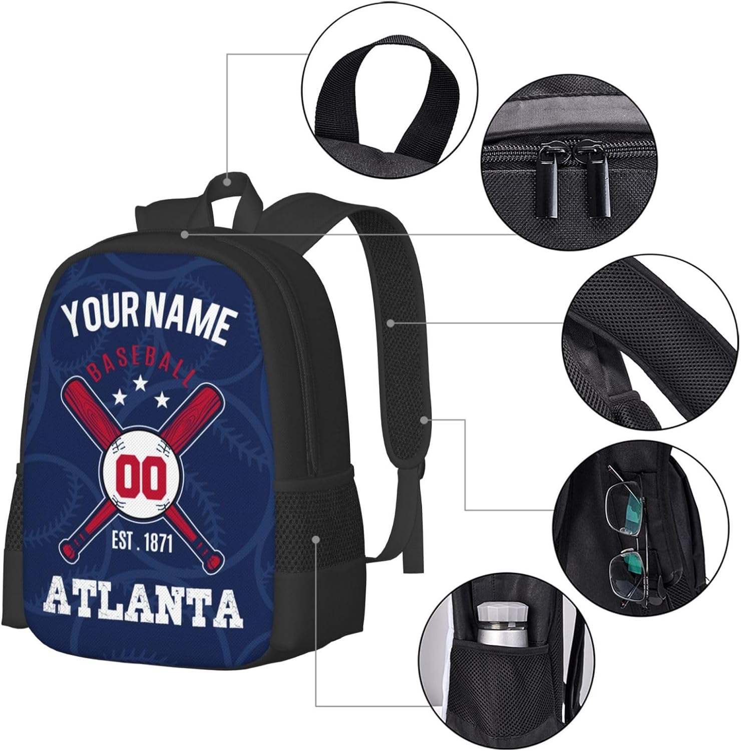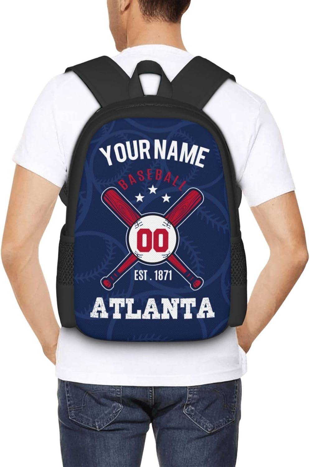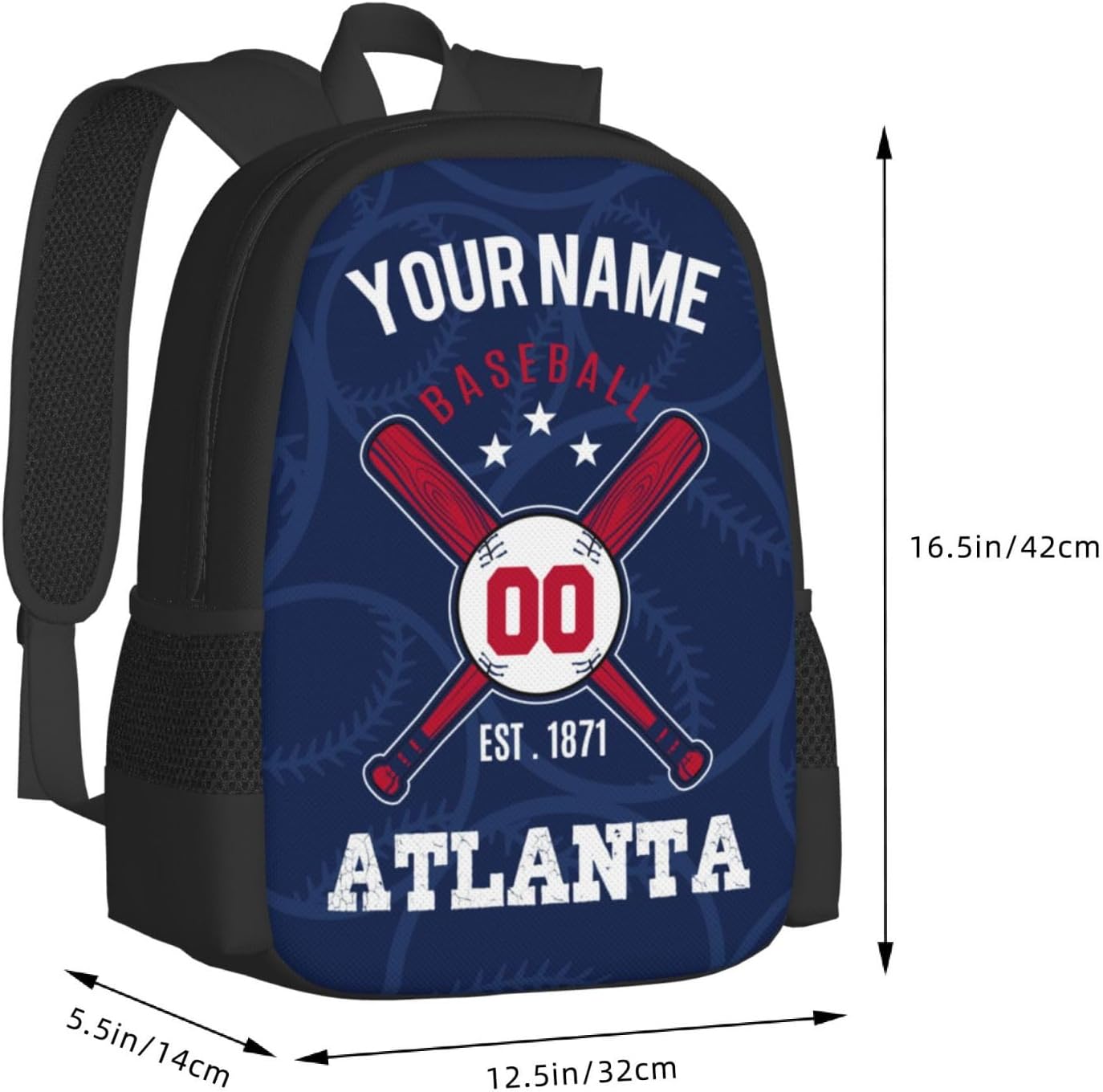 Custom atlanta Backpack for Men Women, Personalized High Capacity Backpacks with Name Number, Customize Laptop Bag Travel Backpack Gifts for Fans