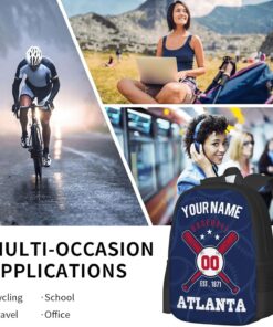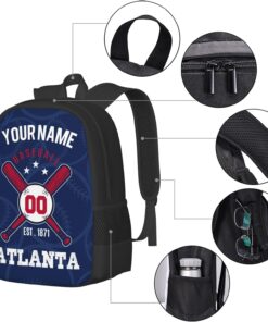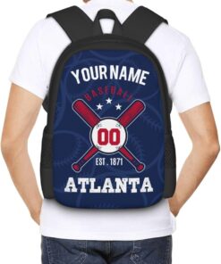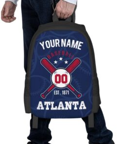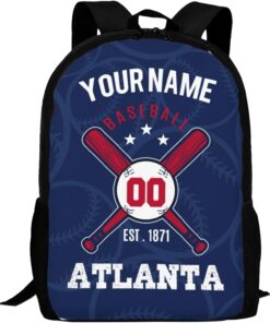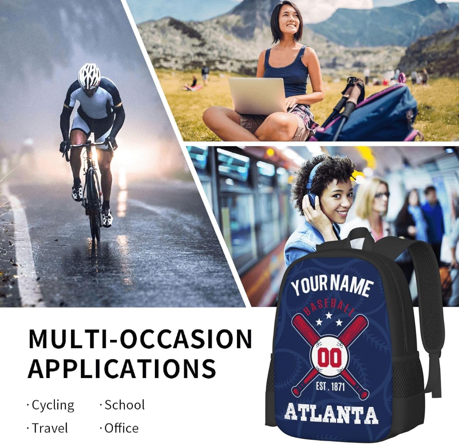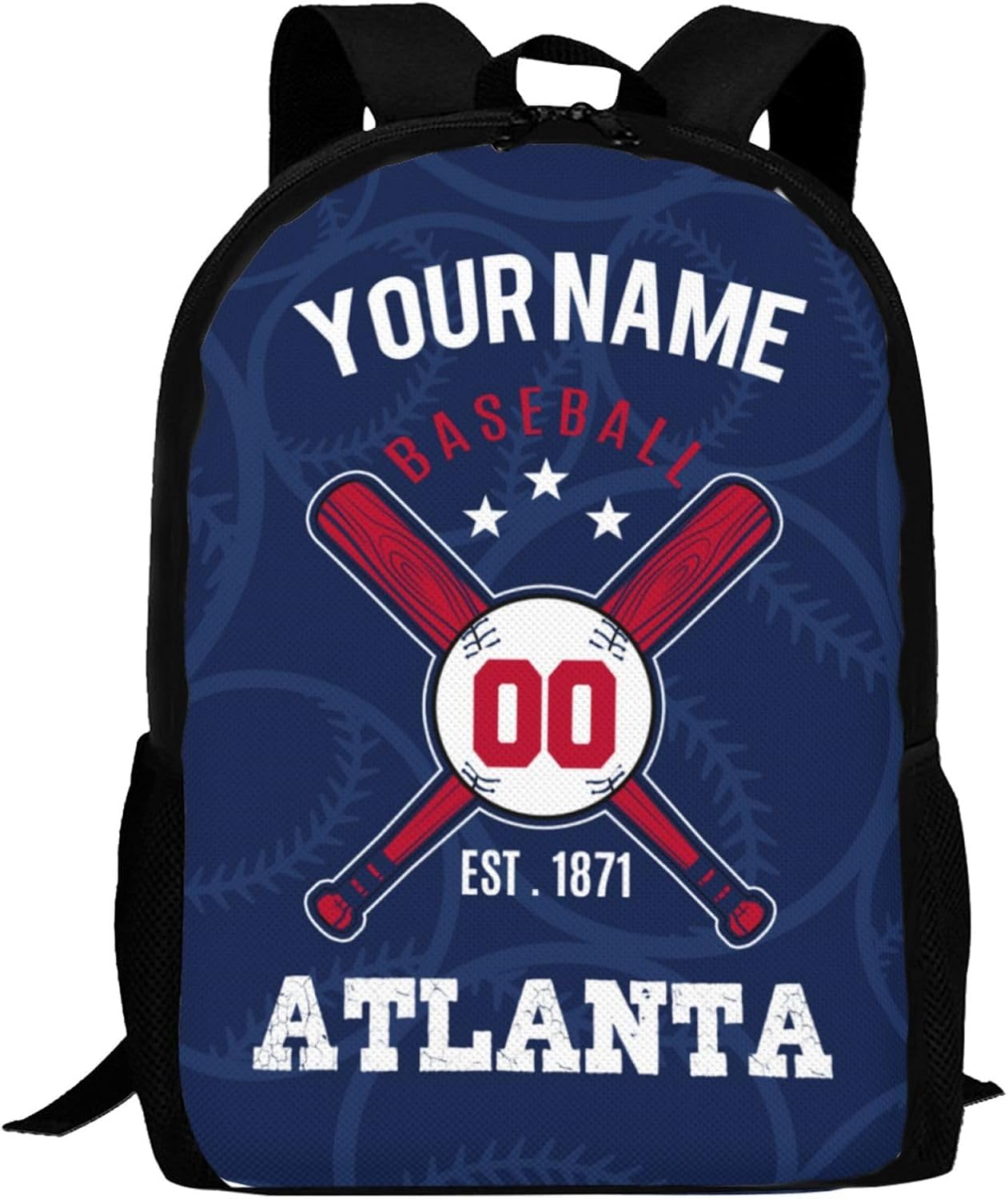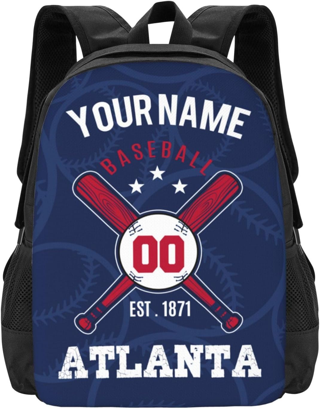 Custom atlanta Backpack for Men Women, Personalized High Capacity Backpacks with Name Number, Customize Laptop Bag Travel Backpack Gifts for Fans