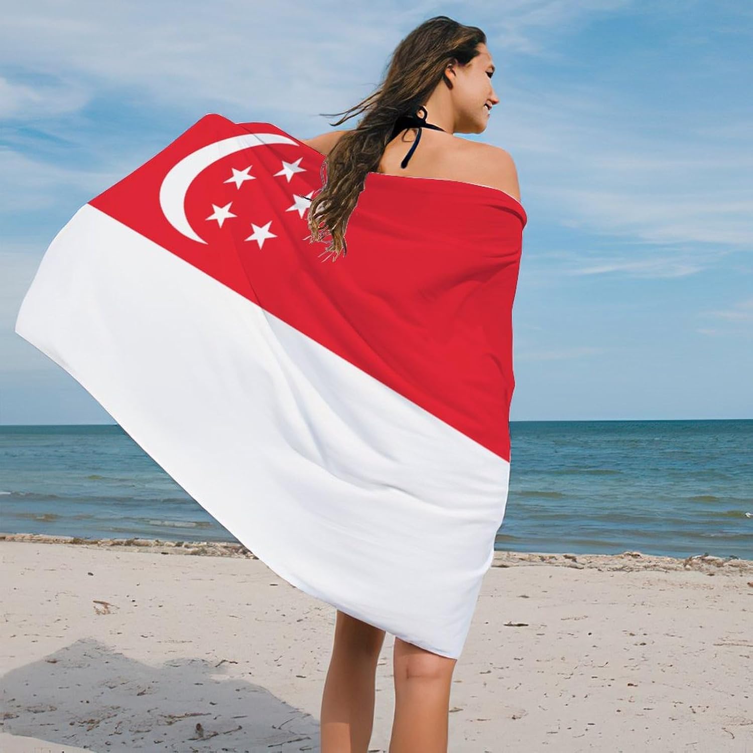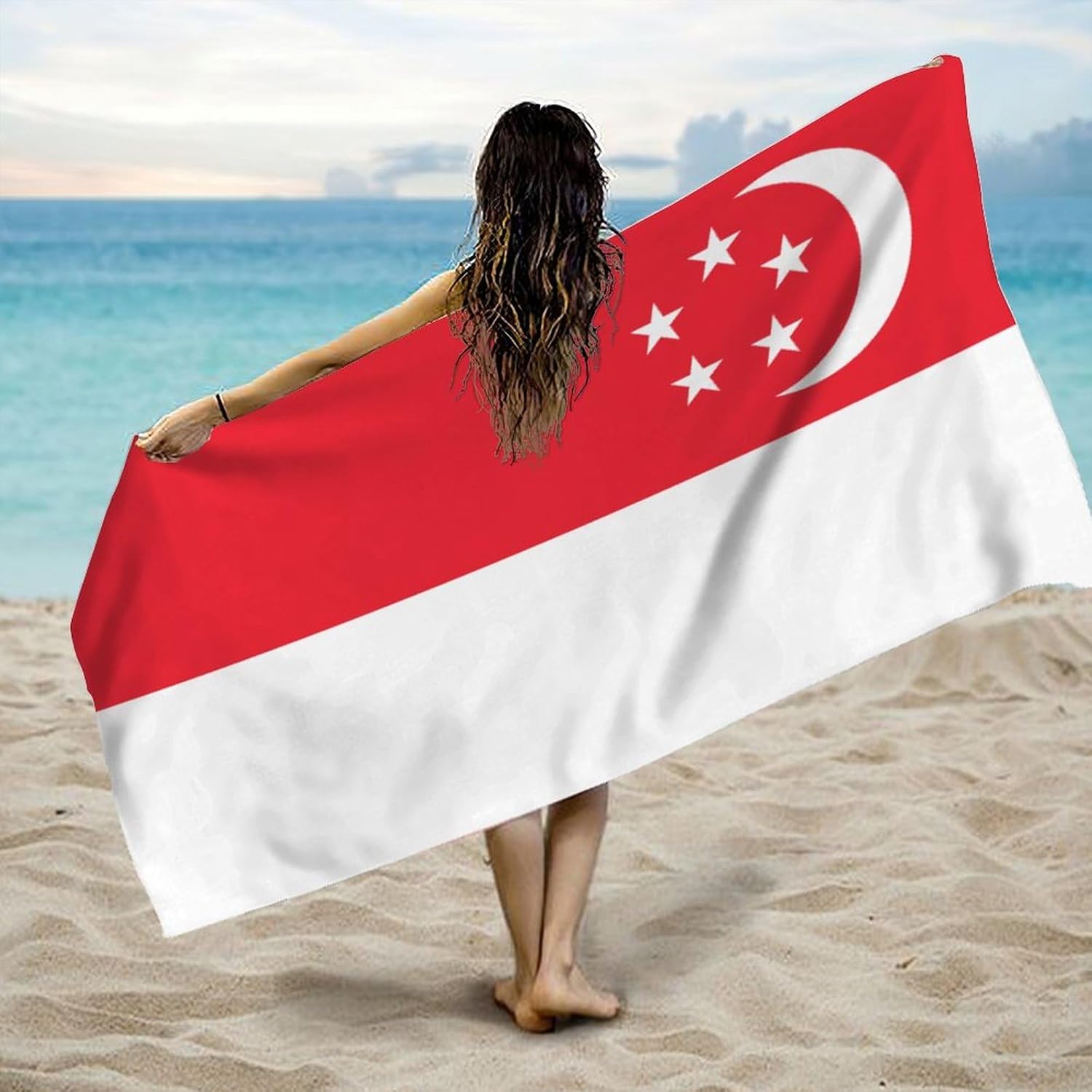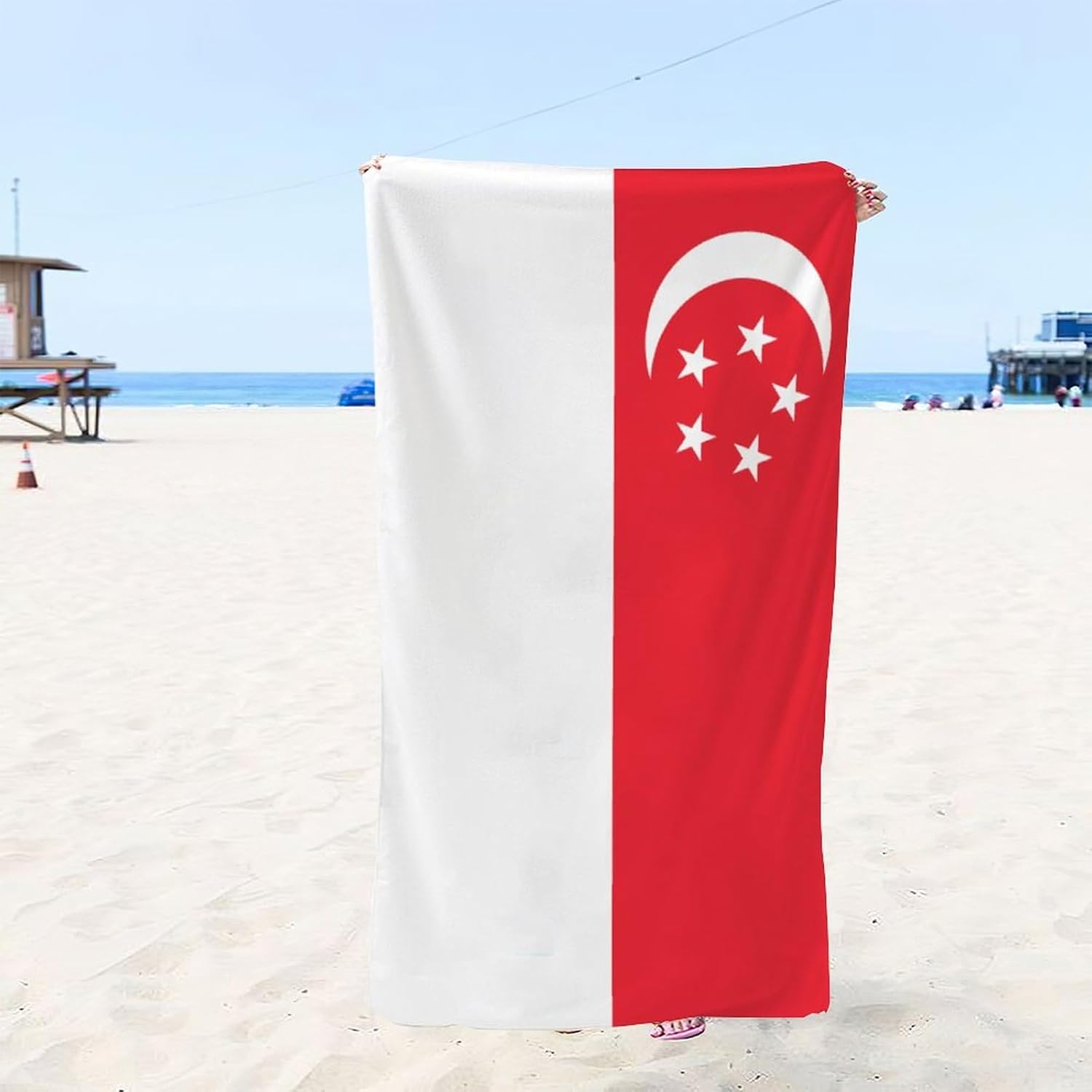Fast Drying Beach Towel 52×32 Inches Vintage Retro Flag Singapore Sandproof Towels Travel Pool Outdoor Sports for Men Adults Swimmers Pool Essentials World Country Map