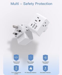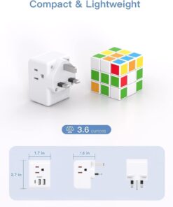 【6 in 1 Type G Plug Adapter】- The UK plug adapter turns 1 outlet into 3 standard American outlets, 2 USB-A and 1 USB-C charging port, Max Capacity Up to 3250 Watt (max 250 Volt, 13 A); 3 USB Ports can charge up to 3.1A, allowing you charge 6 devices simultaneously. ideal for cell phone, tablet, power bank and other electrical chargers; No need to carry extra adapter and power strip for your traveling, can save your suitcase space
