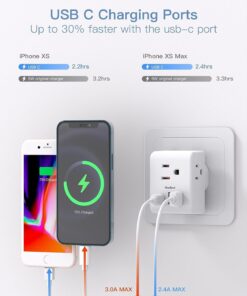 【USB C Fast Charge 】- The plug extender total output of 3 USB ports is 5V/3.1A. Built in smart technology, the multi plug outlet can auto-detect charged devices and deliver optimum charging speed up to 5V/2.4A (max) each port, USB-C up to 3A.( Please note The UCB-C port is not Quick Charger 3.0, doesn’t support any other devices which need 9~22V charging voltage.)