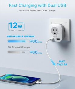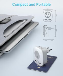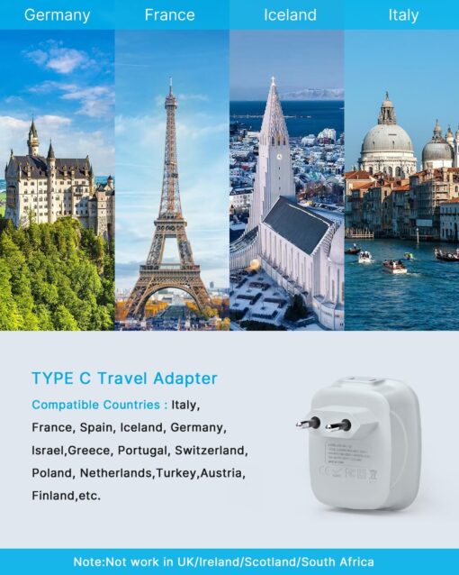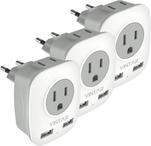 3 Pack European Travel Plug Adapter, VINTAR International Power Plug Adapter with 2 USB Ports,2 American Outlets 4 in 1 Travel Essentials to France, Germany, Greece, Italy, Israel, Spain (Type C)
