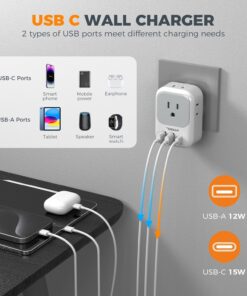 USB C South Africa Adapter: Dual USB A ports charge up to 2.4A, the USB C port charges up to 3A; 2 types of USB ports detect charged devices and give more charging options; ideal for charging cell phone, tablet, laptops, camera, earphone, etc