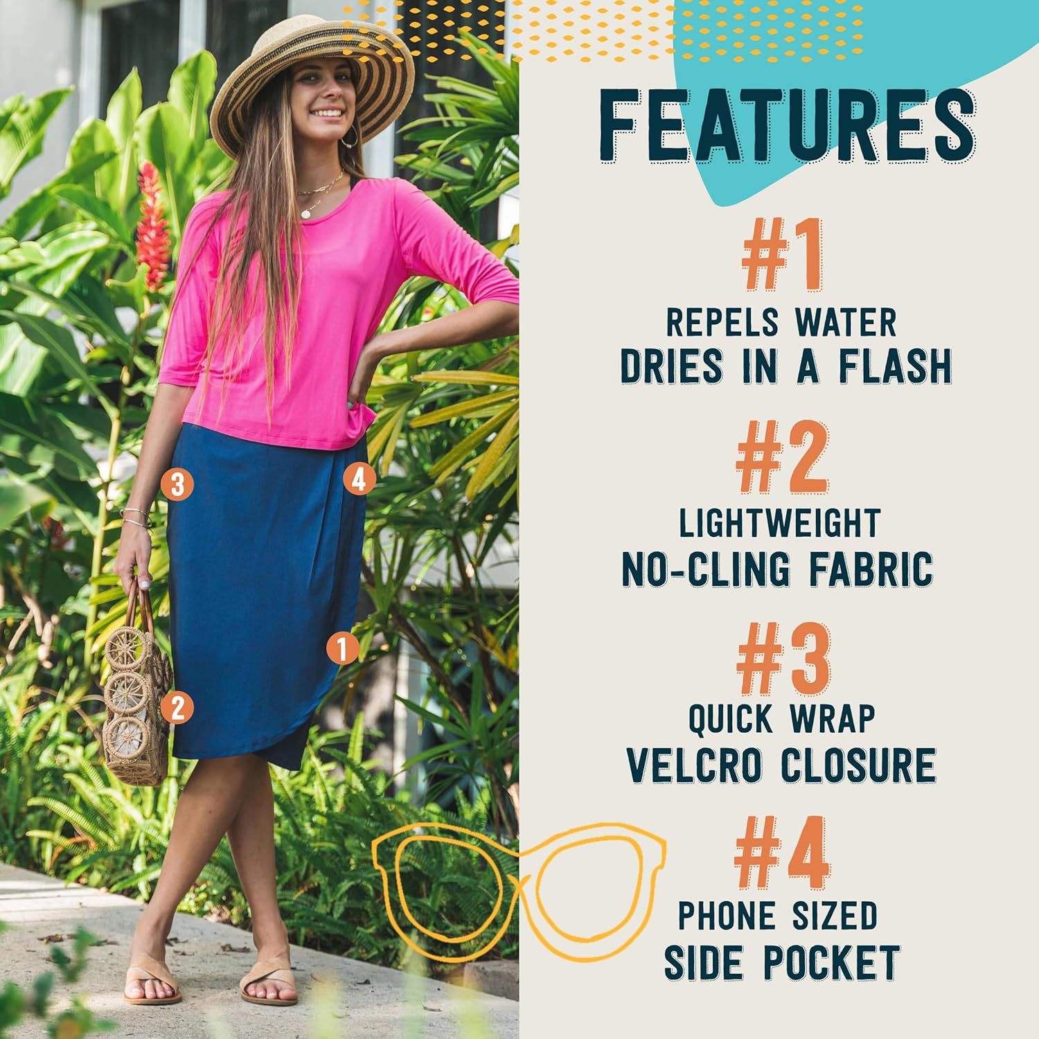 RipSkirt Hawaii Length 3 – Wrap Skirt for Women – Quick Dry Swim Cover-Up for Beach, Travel with Pocket