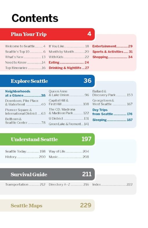 Color maps and images throughout Highlights and itineraries help you tailor your trip to your personal needs and interests Insider tips to save time and money and get around like a local, avoiding crowds and trouble spots Essential info at your fingertips – hours of operation, phone numbers, websites, transit tips, prices Honest reviews for all budgets – eating, sleeping, sight-seeing, going out, shopping, hidden gems that most guidebooks miss Cultural insights give you a richer, more rewarding travel experience – history, music, cuisine, lifestyle, nightlife Free, convenient pull-out Seattlemap (included in print version), plus over 30 color maps Covers downtown, Pike Place Market, Pioneer Square, Belltown, Seattle Center, Queen Anne, Lake Union, Capitol Hill, the U District, Green Lake, Fremont, Ballard, Discovery Park, and more