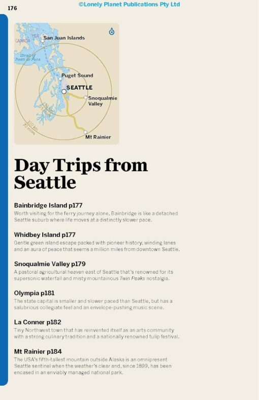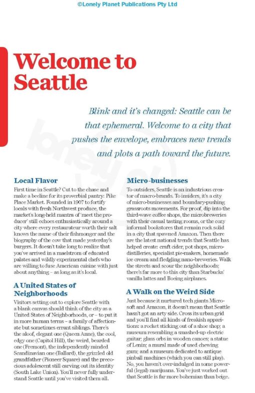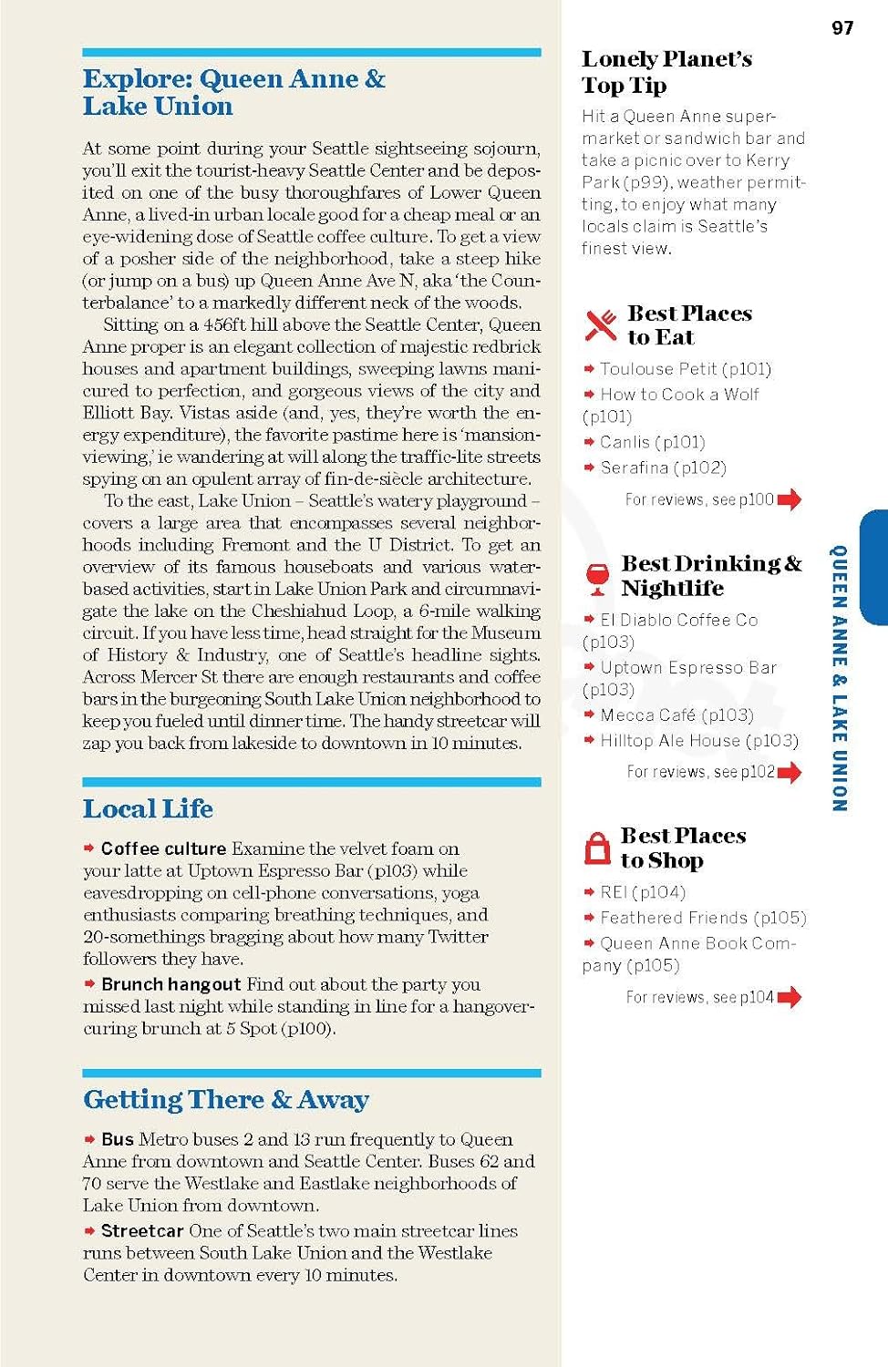 The Perfect Choice: Lonely Planet Seattle , our most comprehensive guide to Seattle, is perfect for both exploring top sights and taking roads less traveled.