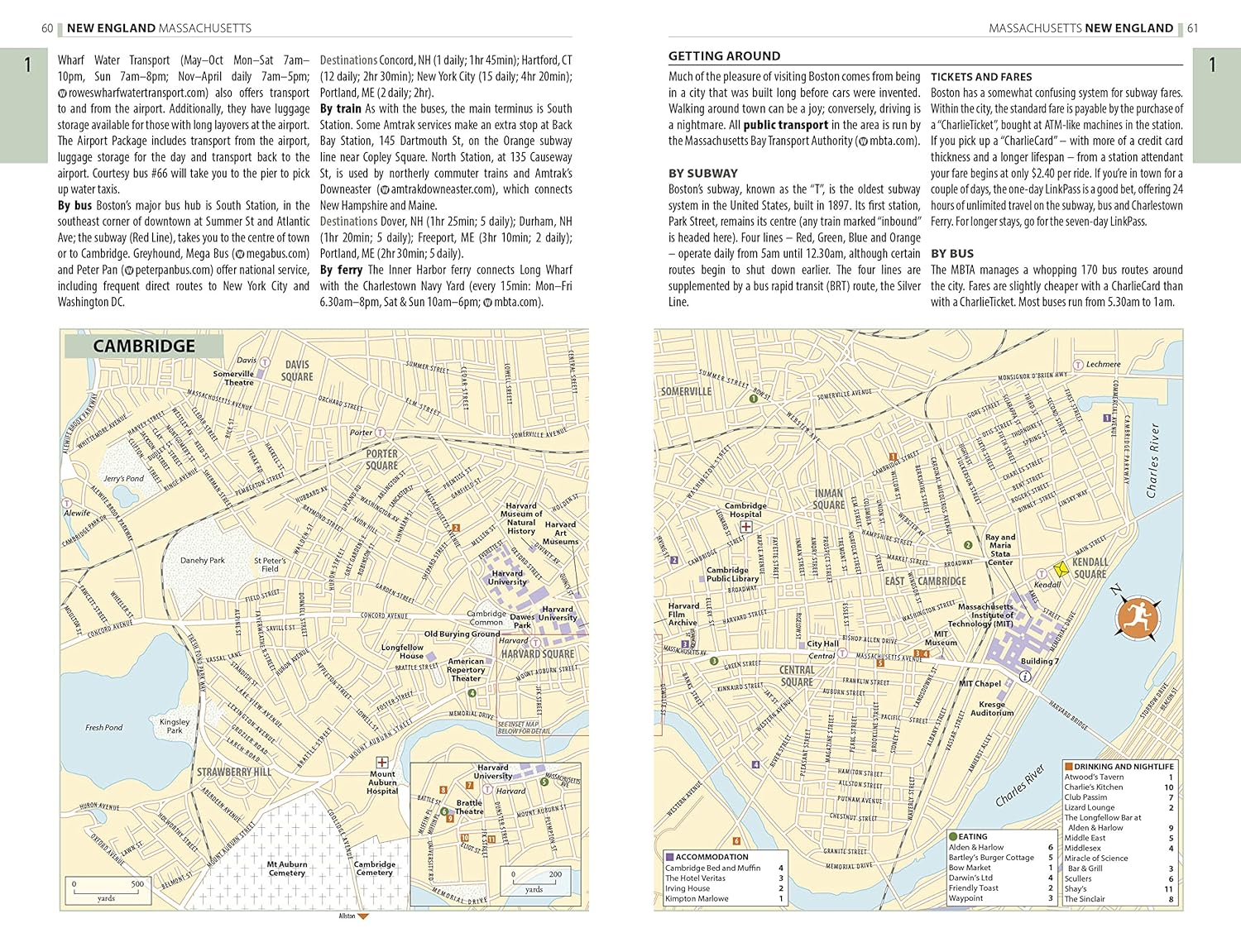 Practical full-colour maps, with clearly numbered, colour-coded keys for quick orientation in Cambridge, Providence and many more locations in New England, reduce the need to go online.